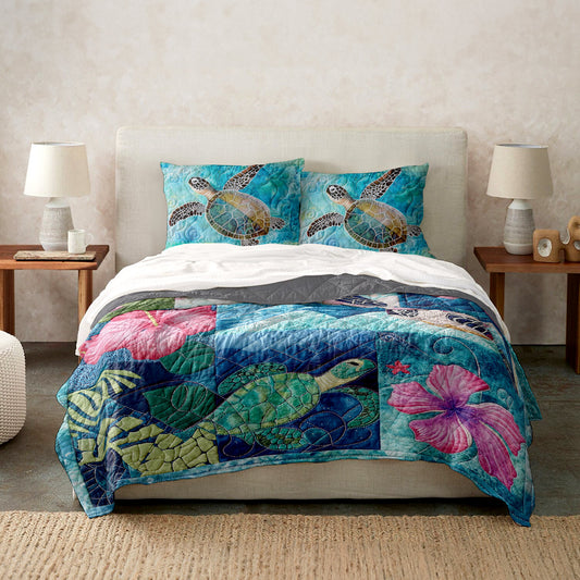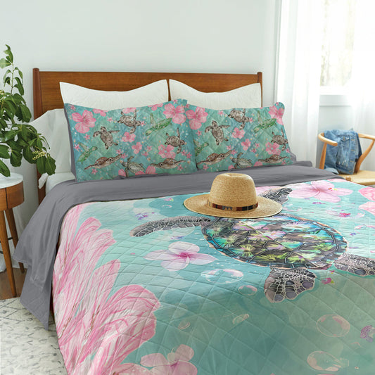 Ceeprints Quilt 3-Piece Set Sea Turtle Tropical Flower