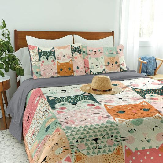 Ceeprints Quilt 3-Piece Set Cute Cat Cotton Fabric Pattern
