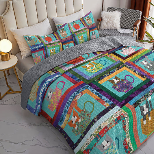 Shineful All Season Quilt 3-Piece Set Kittens in Cups