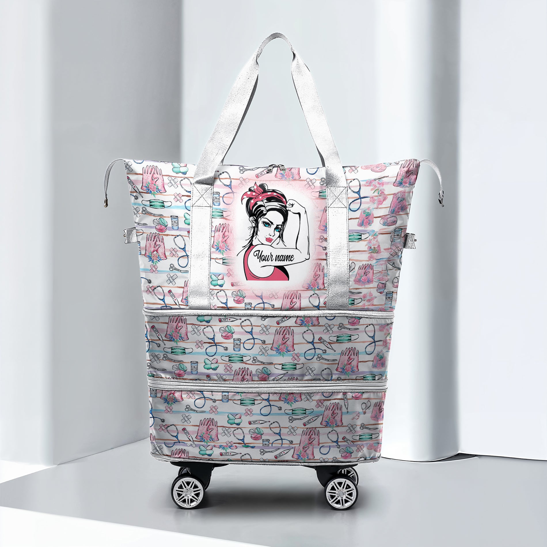 Cee™ Rolling Duffle Bag Stethoscope Chic - Custom Name